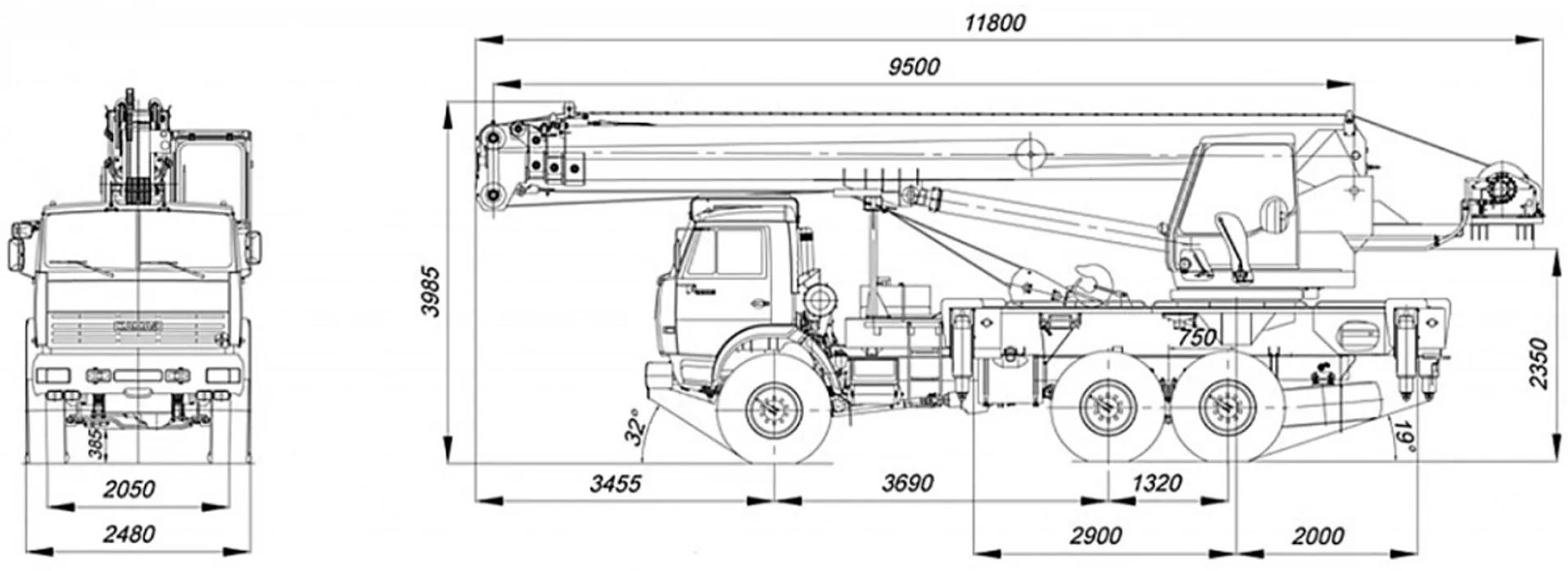 +7 931 957 86 70| Габариты крана в транспортном положении, м (длина x ширина x высота) | 11,8 x 2,5 x 3,98 |