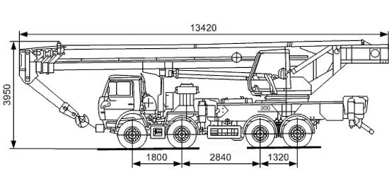 | Размер опорного контура при выдвинутых балках выносных опор, м | 5,4 x 6,8 |