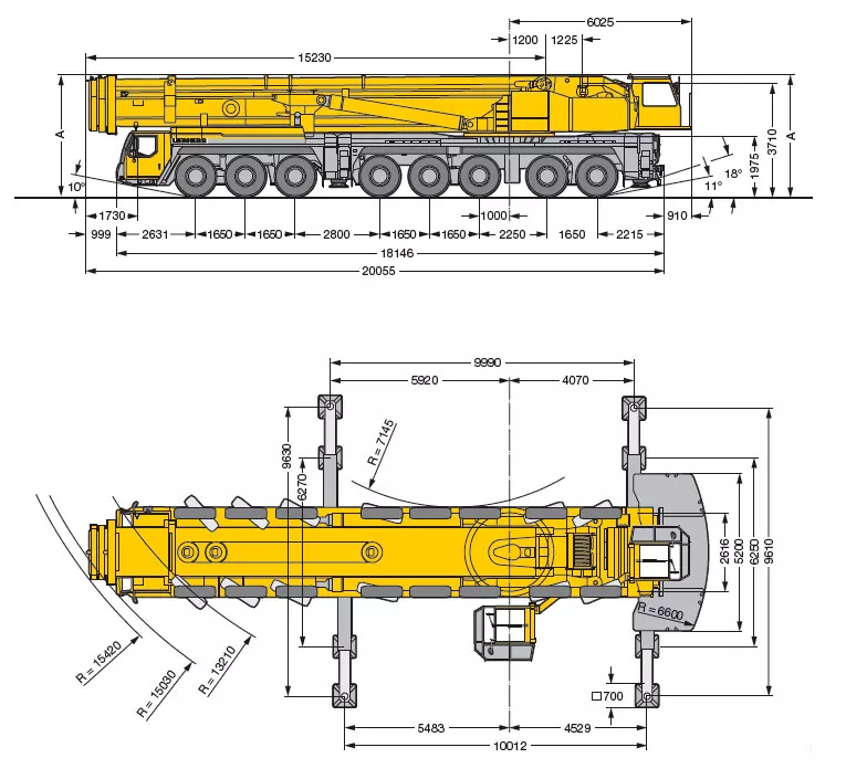 | Габариты крана в транспортном положении, м (длина x ширина x высота) | 20,965 x 2,616 x 3,75 |